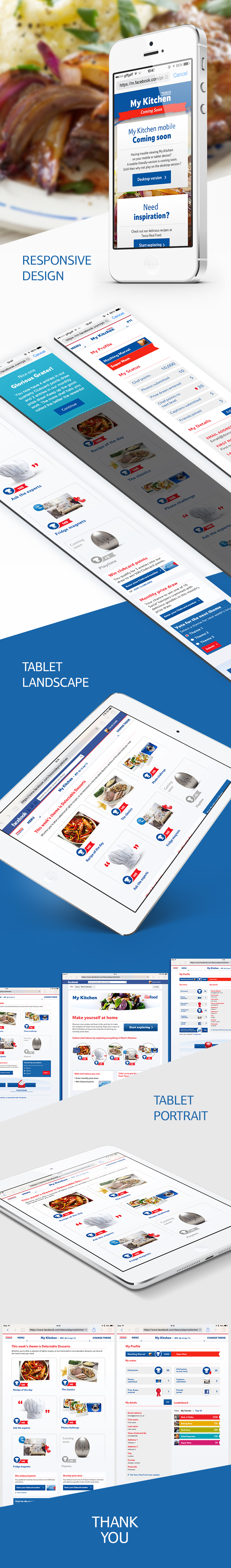 My Kitchen was an in-house developed app. I was involved in the second phase of the project which consisted in working towards making the app responsive across multiple devices.