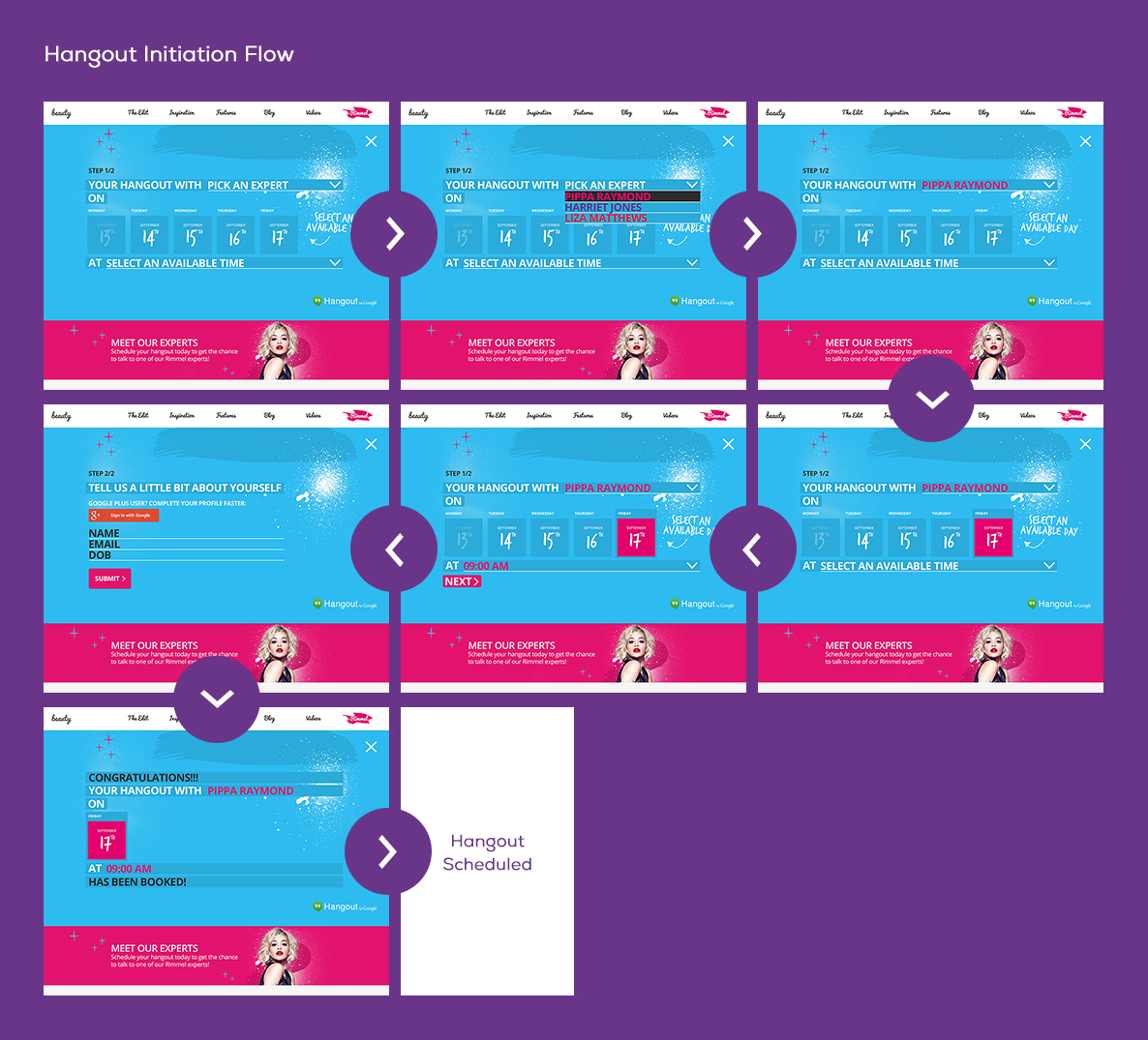 We used the current range of assets of Rimmel to come up with the visuals for the hangouts promotion.